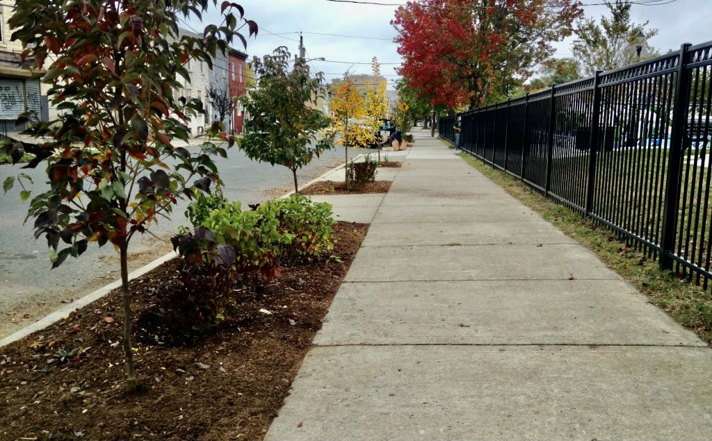 Trees can be the icing on the cake for any park renovation project. Even better is when we can install enhanced tree pits, shown above, which are almost like mini habitats with multiple trees and shrubs! In fall 2020 the NJ Tree Foundation, partners, and volunteers planted 17 trees in and around the 4th & Washington Park in Camden City.